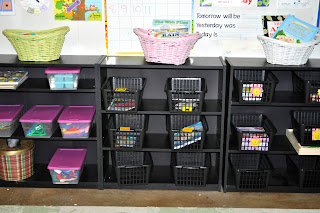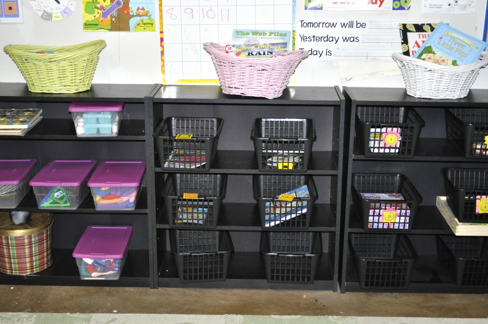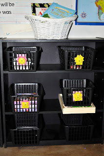 I also have a Book Basket on top of the bookshelves for each girl. I usually put books about our weekly theme in the basket, and I also include easy readers (for my older daughter) or alphabet books (for my youngest daughters).