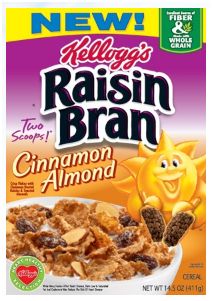 Here’s a coupon for the new Kellogg’s Cinnamon Almond Raisin Bran! You can save 70¢/1 box.