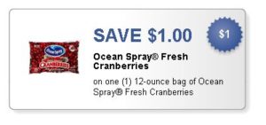 Here’s one to print and hold onto for a good sale! You can currently “Like” Ocean Spray on Facebook and get a $1/1 Ocean Spray Fresh Cranberries coupon.