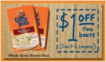 Like Uncle Ben’s on Facebook and click on the “coupon” tab on the left-hand side to find a coupon for $1/2 boxes of Uncle Ben’s!