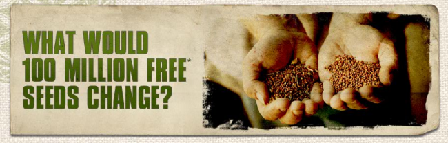 Wow! Seeds of Change is giving away a million seeds and you can get up to 25 packets of organic seeds for only $4.99 shipped. You can also get up to 100 packets of seeds for your organization for $14.99 shipped!