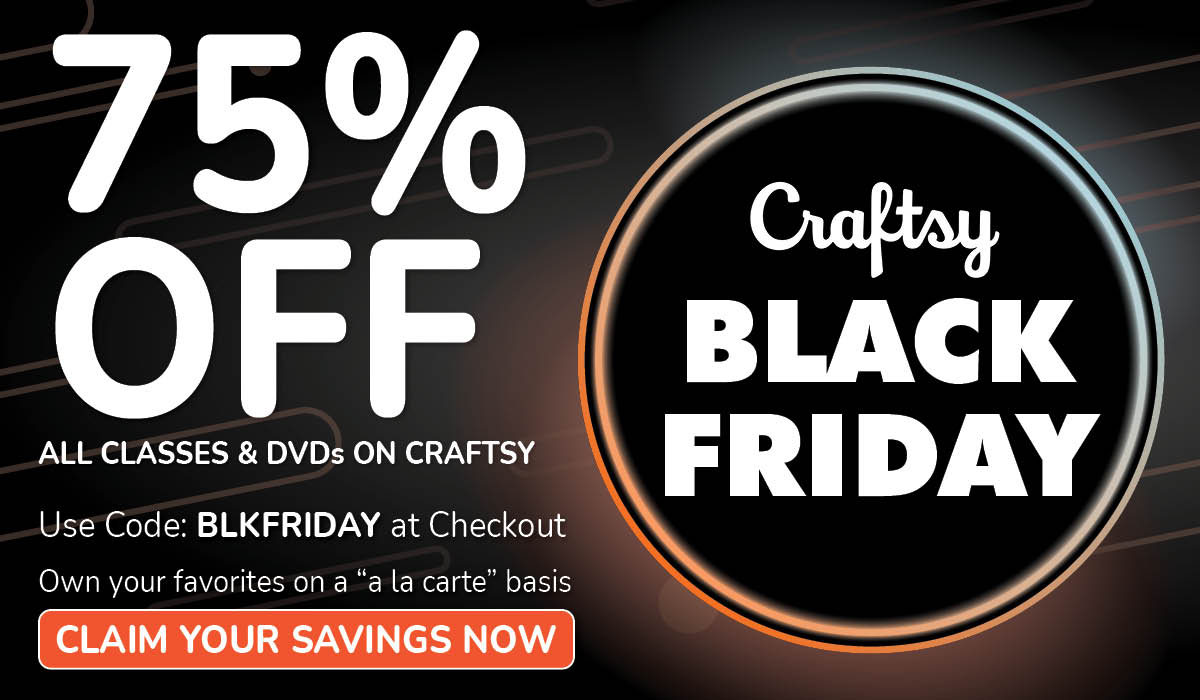 Craftsy is offering 75% off classes and a FREE ebook gift with purchase. You’ll need to use the code BLACKFRIDAY to get this offer.