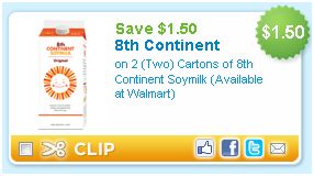 There are several natural and organic coupons available today — including this one for $1.50/2 8th Continent Soymilk cartons.