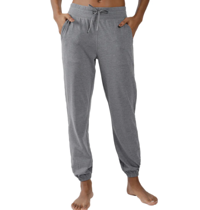 You can choose from two colors: Heather Grey and Heather Charcoal. These casual joggers are super soft, have a drawstring closure, and are made of a comfortable four-way stretch fabric. Please remember that prices may change.