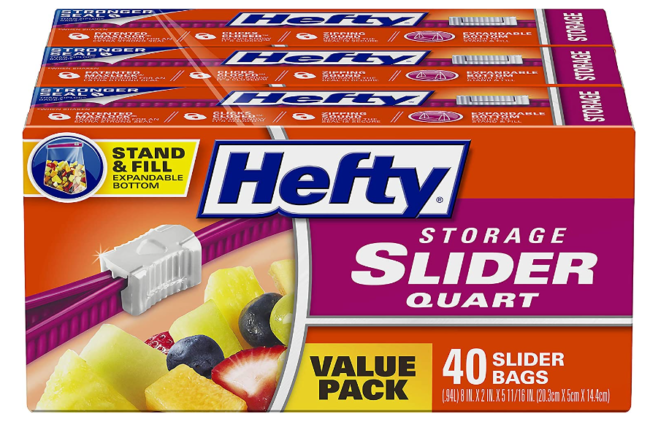 - QUART SIZE FOOD STORAGE BAGS—This pack includes three boxes of 40 quart size Hefty Slider Storage Bags (120 Total)