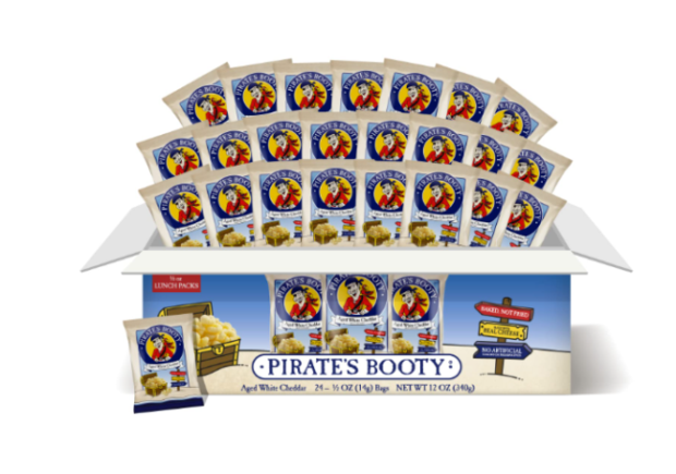 - Pirate’s Booty Aged White Cheddar Cheese Puffs contain 24 (.5oz) size snack-size bags; Perfect as a movie night snack for kids