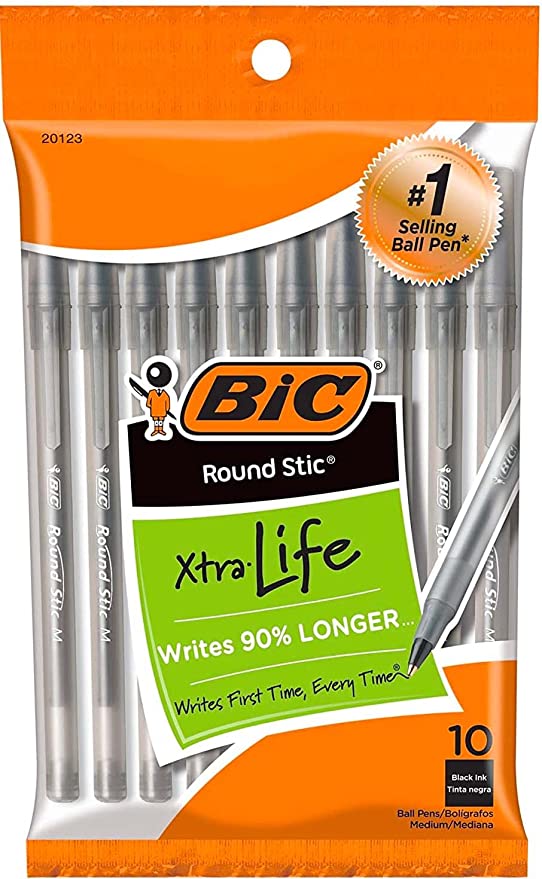 - One 36-count pack of BIC Round Stic Xtra Life Black Ballpoint Pens