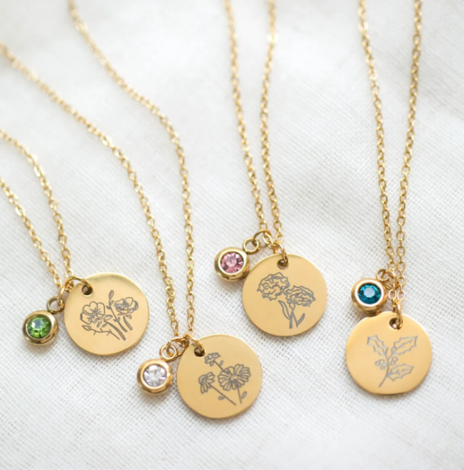 You can choose from gold or silver and pick your birth month. Please remember that prices may change.