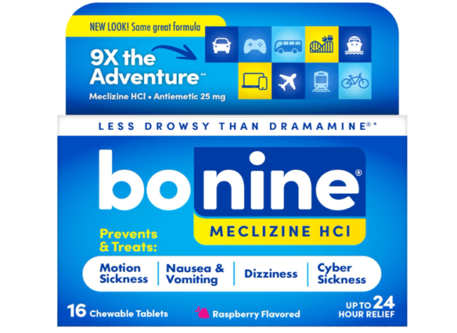 - CONVENIENT CHEWABLES: Bonine chewable motion sickness tablets are a perfect addition to your travel kit – no water needed Treat your symptoms quickly and easily with this Raspberry flavored chewable tablet