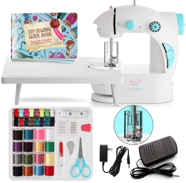 This would make a great gift for a beginning seamstress! Hop on over to Walmart.com where you can get this CraftBud Mini Sewing Machine Kit for just $37.99 (reg. $54.99). This 48-piece kit comes with a mini sewing machine, 16 threaded spools, 16 prefilled bobbins, 10 sewing needles, a seam ripper, storage bag, and more. Please remember that prices may change.