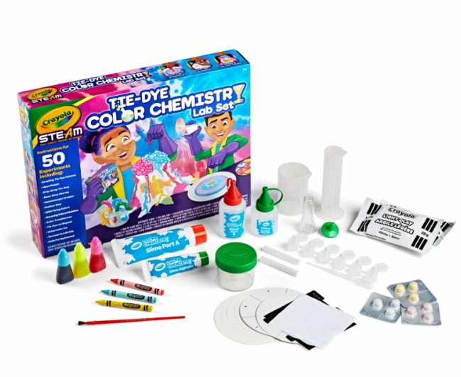 This is a HOT clearance deal and it would be a great set to tuck into the gift closet! Walmart.com is currently offering you this Crayola Tie-Dye Color Chemistry Set for just $8 (reg. $26). This kit comes with instructions as well as supplies for tons of experiments with neon inks, erupting volcanoes, mosaics, and more. Please remember that prices may change.