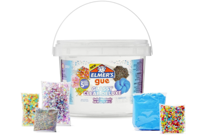 Elmer’s Gue Glassy Clear Slime 3lb. Bucket w/Add-Ins for $14.75 (reg. $34.61)