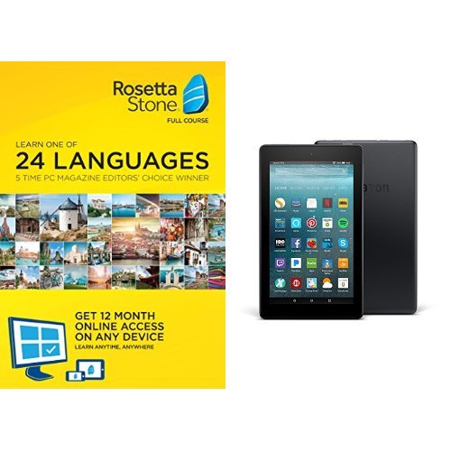 - Pair the newest version of Rosetta Stone’s award-winning interactive language software with the next generation of our best-selling Fire tablet–now thinner, lighter, and with longer battery life and an improved display. Use the key provided on the key card to unlock the course, which you can access on your Fire tablet, in browser, or on your phone to continue learning on the go.