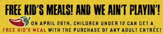 Buy an adult entree and get a FREE kid’s meal (under age 12). Print the coupon HERE and take it to your local Chili’s!