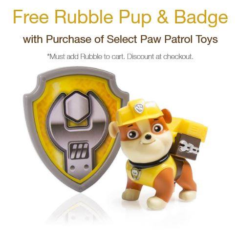 Amazon has Paw Patrol toys on sale up to 35% off! Now through 11.30.15 get a FREE Rubble Pup and Badge, valued at $8.99, with the purchase of select Paw Patrol Toys. The FREE Rubble must be added to your cart and will be discounted at checkout. Here are just a few of the Paw Patrol Toys included in this deal: