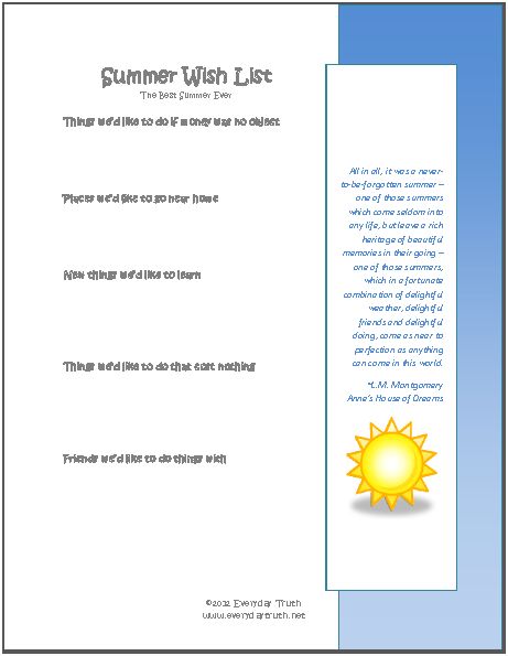 Now is the time to plan and have a purpose-filled summer. Everyday Truth is offering a pack of The Best Summer Ever printables.