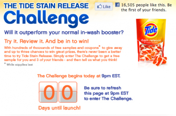 Today (March 28, 2011) at 8 PM (CST), Tide will give away 100,000 free Tide Stain Release samples!