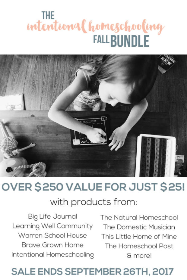 If you homeschool, you might want to take a look at this bundle. Today (9/25) is the last day you can get the Intentional Homeschooling Fall Bundle for just $25. With a variety of homeschool resources to help you, it’s worth taking a look since the value is over $236.