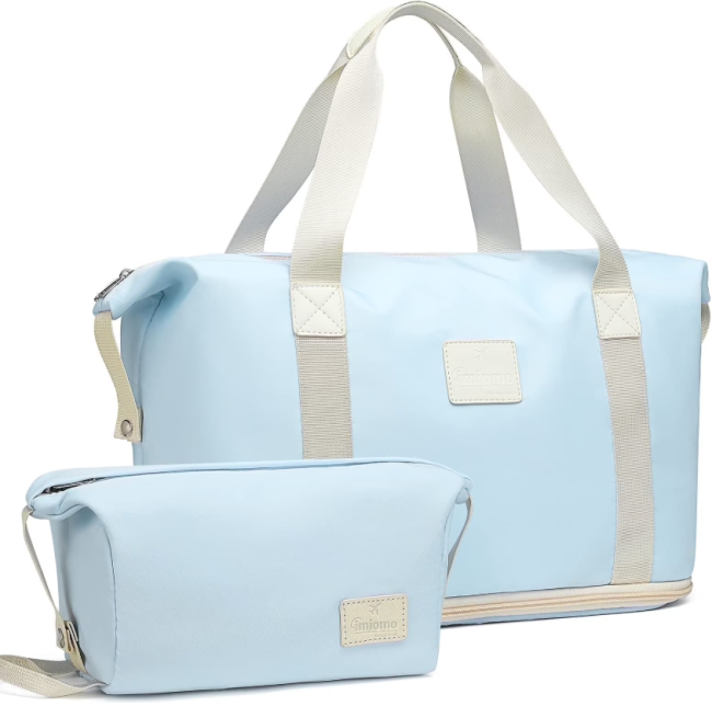 This highly-rated set comes with a zippered toiletry bag as well as an expandable duffel bag. They are both made out of durable, lightweight, and waterproof material. Please remember that prices may change.