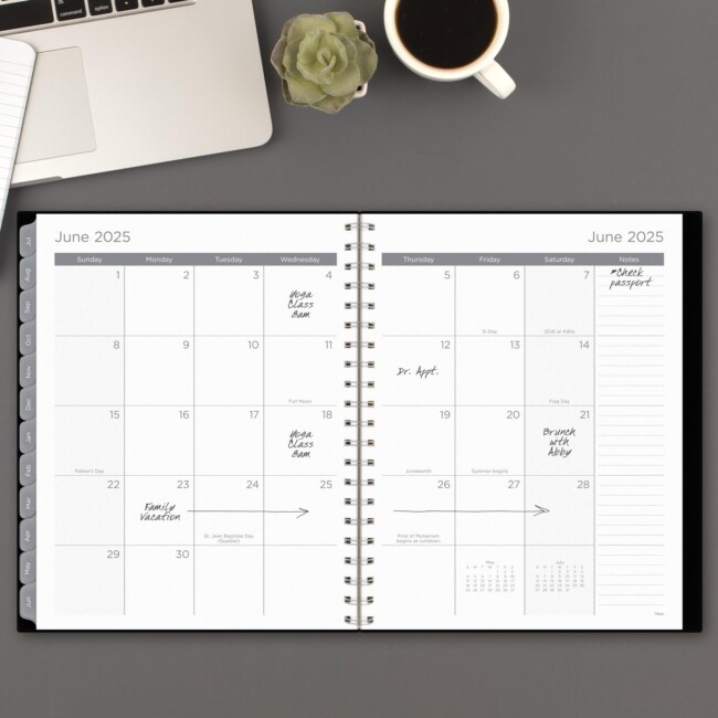 With this planner, you can keep track of meetings, events, appointments, and more. It also comes with two future planning pages, six password pages, a holiday list, and eleven notes pages. Please remember that prices may change.