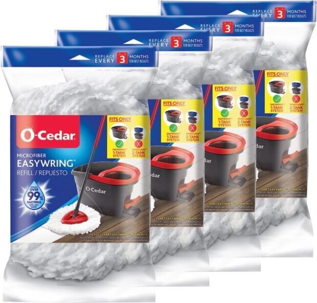 - 4 GENUINE O-CEDAR MOP HEAD REPLACEMENTS: Get the most from your O-Cedar EasyWring Spin Mop System with genuine O-Cedar mop head refills that are designed for optimal floor cleaning performance. Includes 4 genuine O-Cedar EasyWring Refills.