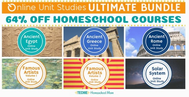 Do you have plans to study ancient history, solar system or art history? Here’s a great deal on these six popular Online Unit Studies from Techie Homeschool Mom. The regular price is $35 each, but for just $12.50 each (total $75), you get: