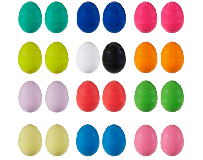 This collection features 24 plastic eggs that are each filled with 2 ounces of colorful Play-Doh modeling compound. Please remember that prices may change.