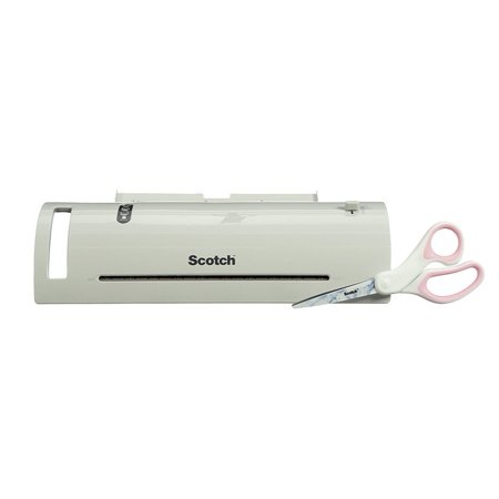 The TL902 Laminator laminates items up to 9 inches wide and features a Two roller system with 2 unique temperature settings for 3 and 5 millimeter thick pouches. Laminating preserves and protects photos, projects, important documents and other paper-like items that you handle frequently. This set also features Precision 8in. Multi-Purpose Scotch Scissors made from stainless steel blades for ideal cutting performance Each scissor is designed with a soft comfort grip handle for right and left-handed users. Also includes a 10-year limited warranty on scissors.