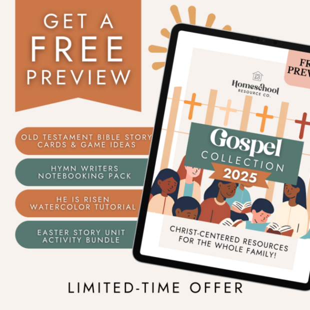 Grab some really nice freebies right now from HomeschoolResource Co. This is a preview for the upcoming Gospel Collection, and you’ll get 4 different digital downloads.
