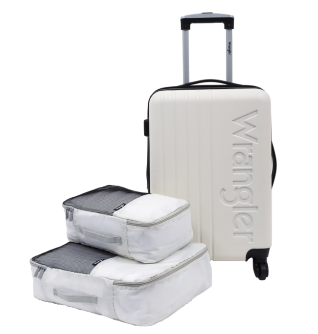 This would make a great graduation gift! Right now, hop on over to Walmart.com where you can snag this Wrangler San Antonio 3-Piece Rolling Luggage Set w/20″ Rolling Carry-On & 2 Packing Cubes for just $34 (reg. $54). You can get this set in four colors: Beige, Blue, Gray, and Lilac. Please remember that prices may change.
