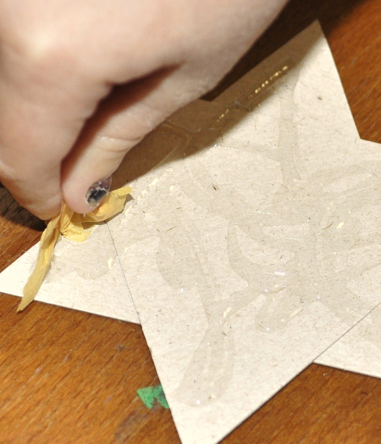 3) Cover with glue. Crumple tissue paper and place on the star.