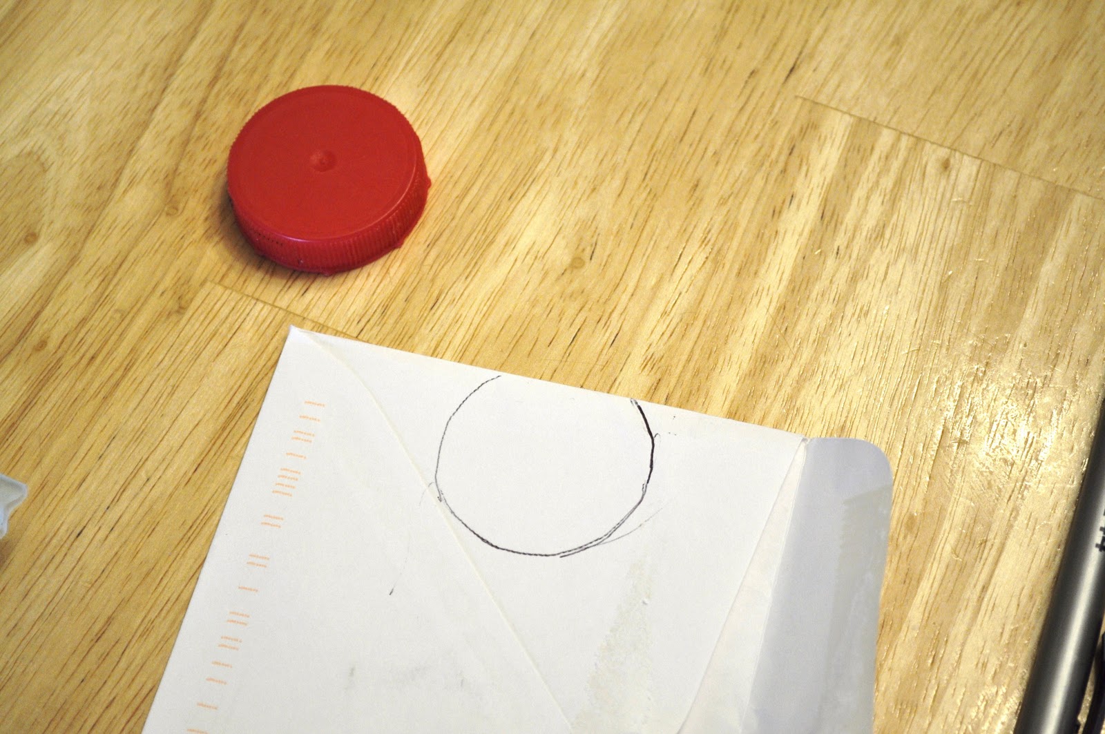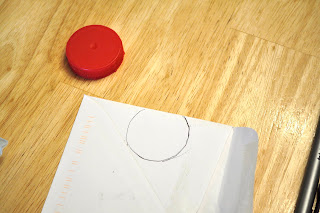 3) On the edge of an envelope, trace a circle. Be sure not to cut the fold.