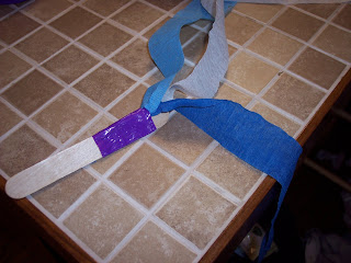 2) Bunch up the ends of the streamers and tape it to the stick.