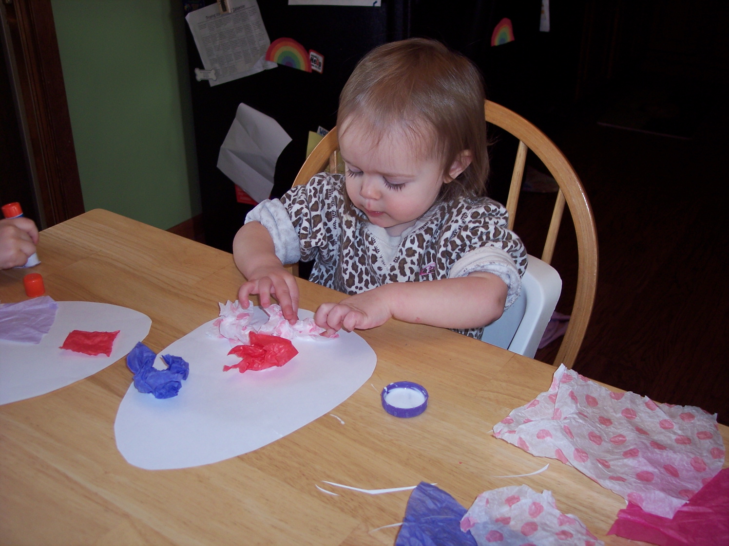 *For a variation, use a gluestick and glue the pieces flat onto the egg. Older children might enjoy using scissors to cut the pieces of tissue paper.