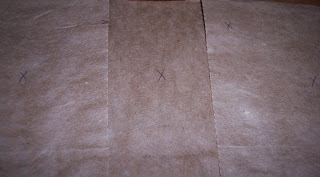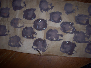 1) Cut a paper bag so it lays flat. Mark a checkerboard pattern (so your child know where to stamp)