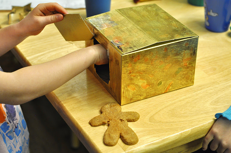 This was great! My 5 year old son and 2 year old daughter enjoyed making, decorating and finding the gingerbread men. I did not have a "house" but used a Tupperware container. Great recipe too–used butter since that is what we have on hand. I also chilled the dough. These are cake like and taste great. Thank you for posting!