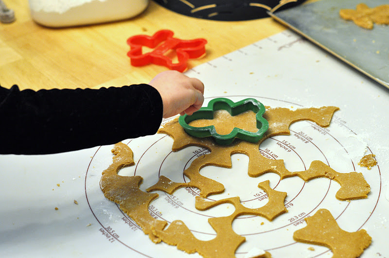 1) Make your favorite gingerbread cookies (this is our milk and egg-free version). Put them in the oven. Distract the kids, so they won’t be around when the cookies finish baking.