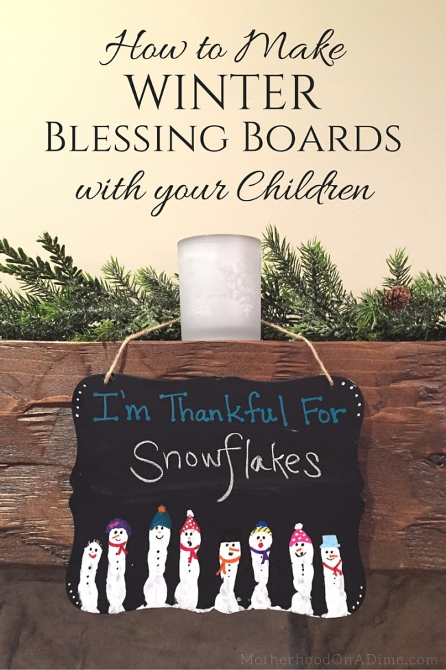 So today, we are making Winter Blessing Boards with our kids. Not only will the boards help us count blessings and develop thankful hearts, but they will also be precious keepsakes with our children’s artwork.