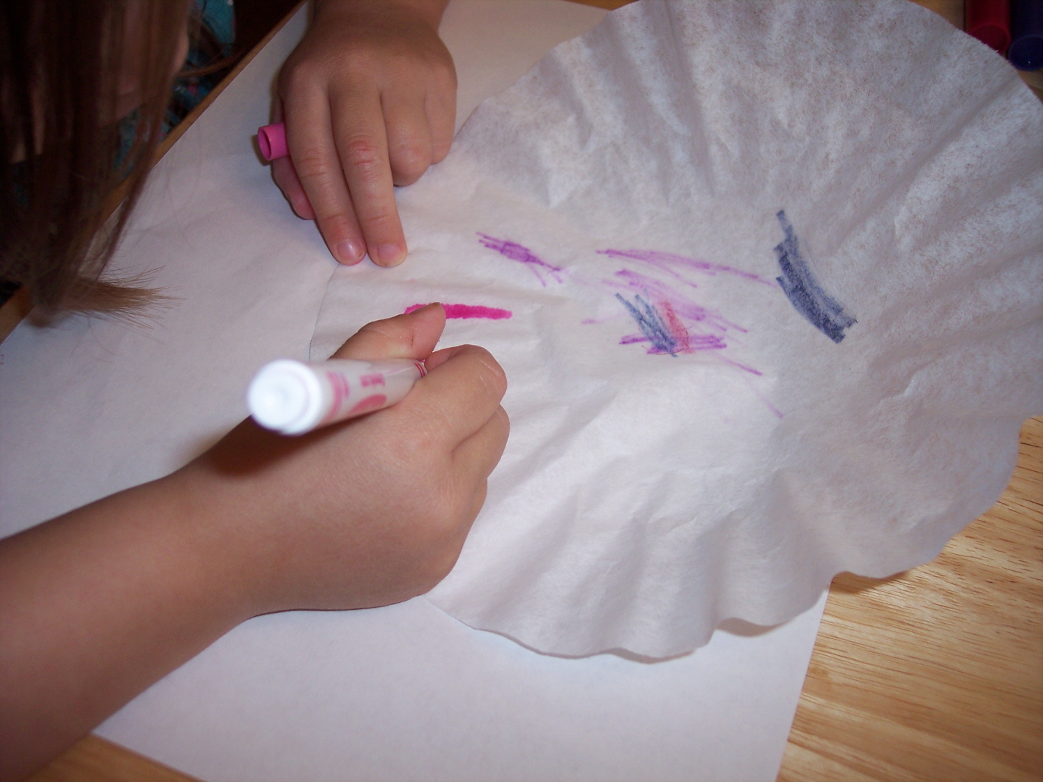 4) Scrunch the coffee filter and clip with the clothespin to form butterfly wings.