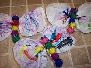5) Place the butterfly in a toilet paper tube. Tape and wrap a streamer around the tube to form a chrysalis.