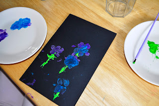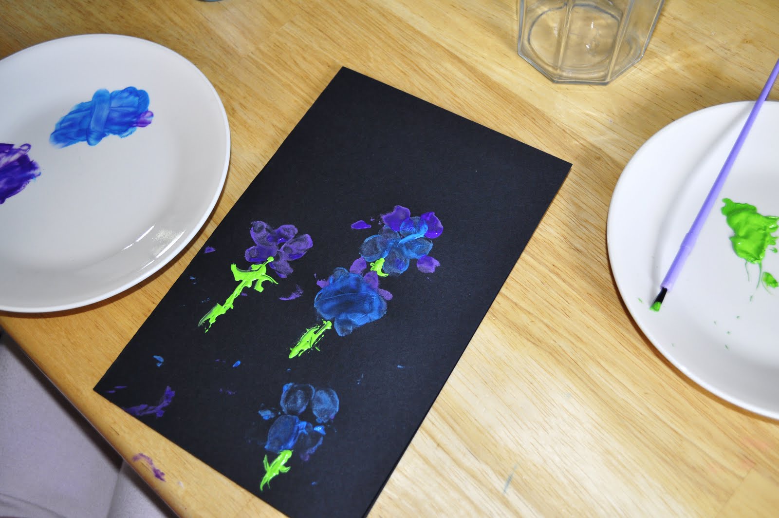1) Press finger into paint and use fingerprint to make a “flower” shape.