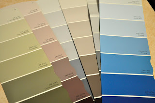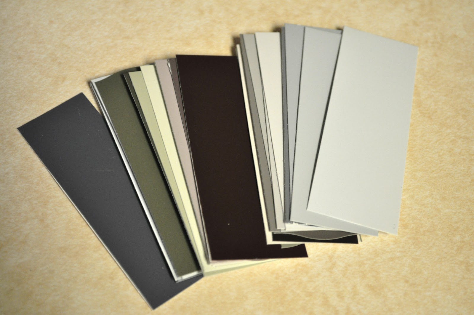 1) Pick out a handful of coordinating paint samples (approximately 5-8 cards). I had both wide and narrow samples, so I chose to use the wider ones.