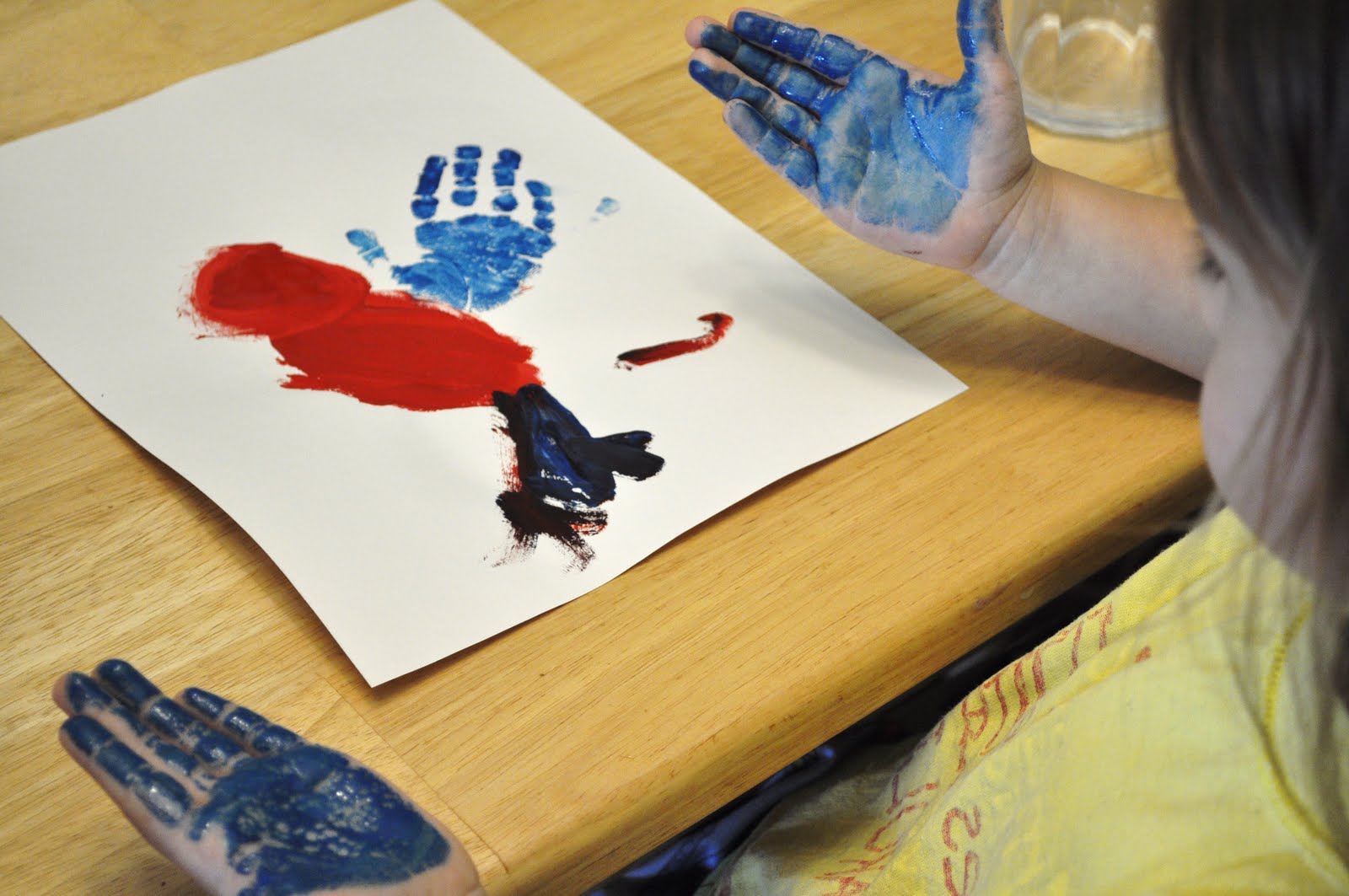 3) Paint a beak and tail. Add feet if desired. Use an index finger to dot on an eye.