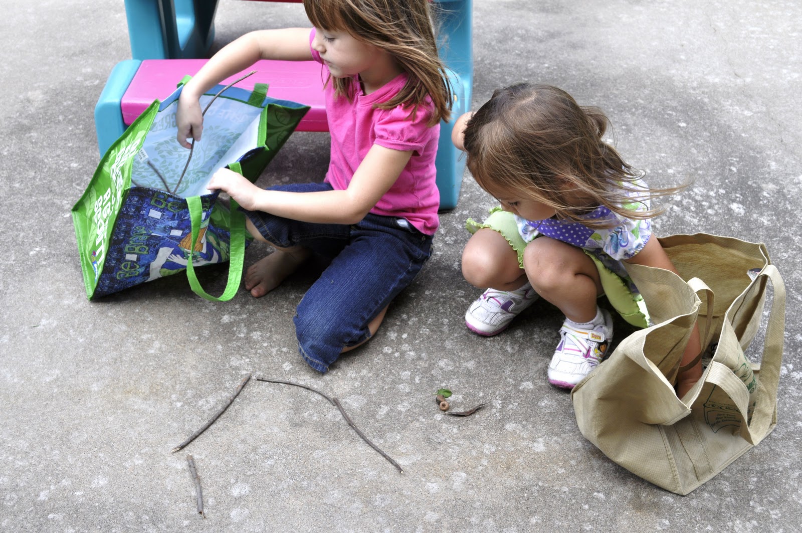 1) Find a place where you are allowed to pick up items from nature. We only picked up things that had already fallen (dried pine needles, pinecones on the road, leaves on the ground, etc.).
