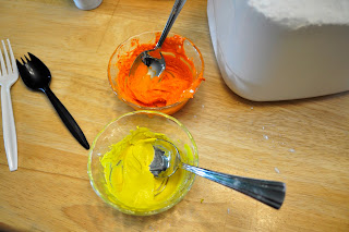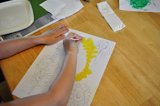 2. Share with your child that Vincent Van Gogh applied several layers of paint to achieve a thick texture in his paintings. We just did one layer of paint, but we thickened tempera paint by mixing in small amounts of flour until the desired texture was reached.
