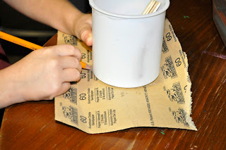 1) Trace a circle (3-4 inches across) on sandpaper. Cut out.