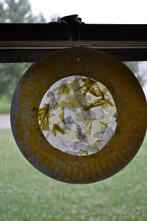 It would be nice if the sun actually came out for our sun theme week! It’s still cloudy today, but we made sun catchers anyway!