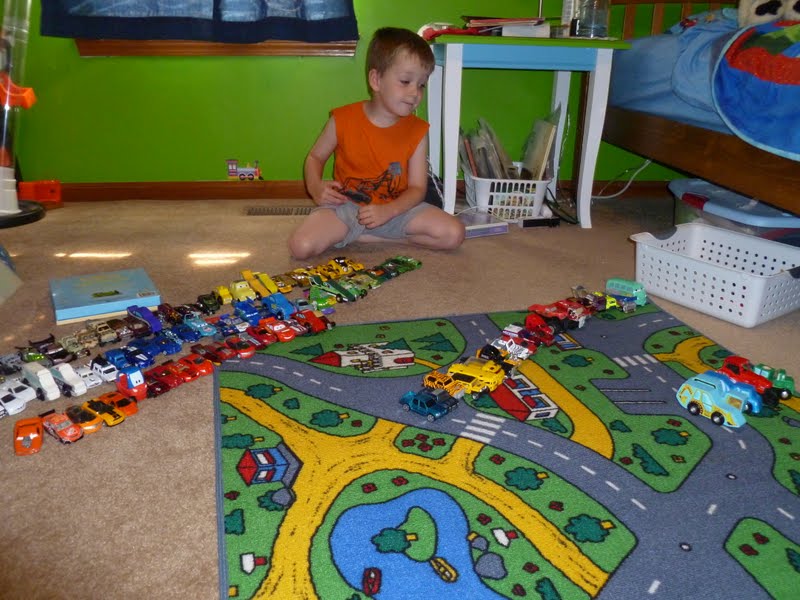As a girl myself, I’ve had to adjust my expectations about how I will teach and learn with my four-year-old son. As he has grown, I’ve realized that to capture his attention I need to start with what *he* loves, not with what I think is fun. And he loves…cars. He would be one happy boy if I would sit on the floor with him and just play cars.