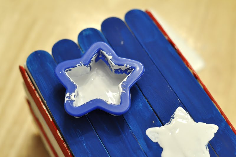 4) Paint white stars on the blue sides. (I’m telling you — cookie cutters are versatile!)