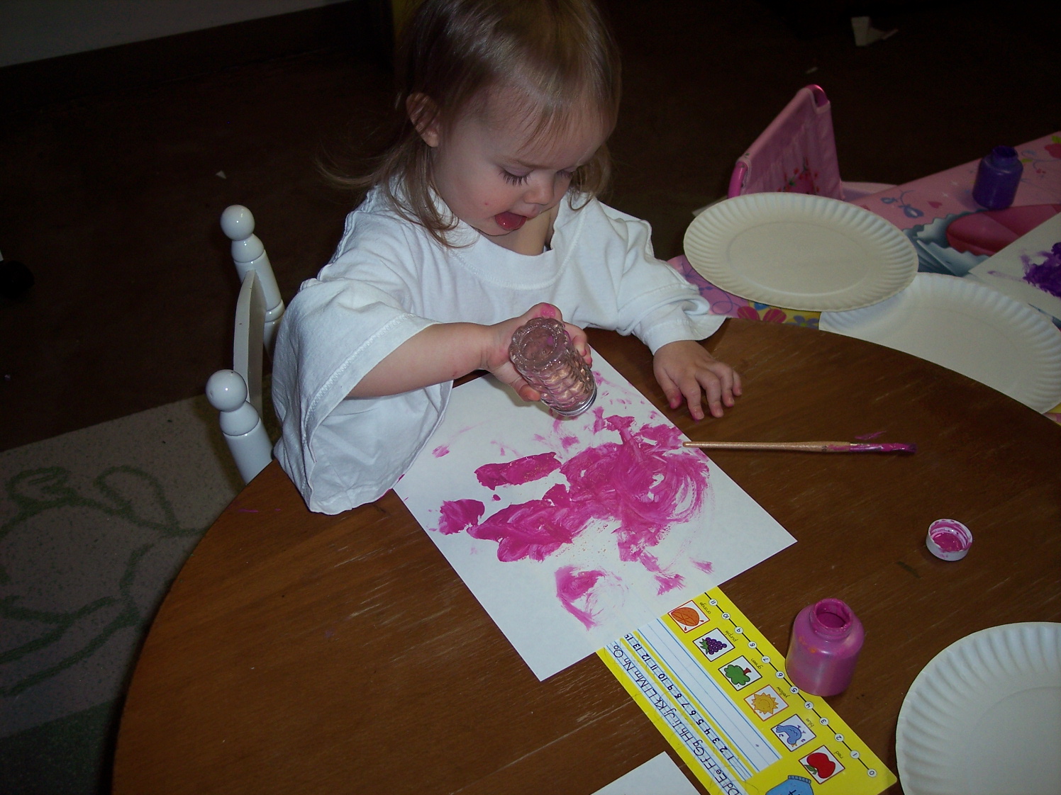 1) Ask your child to paint a flower (Princess wanted to paint a “heart” flower). If your child doesn’t have the ability to paint a flower, it’s okay. Just have them paint the paper. Later, you can cut a flower shape out of their painting (I made sure to get permission from the painter!).